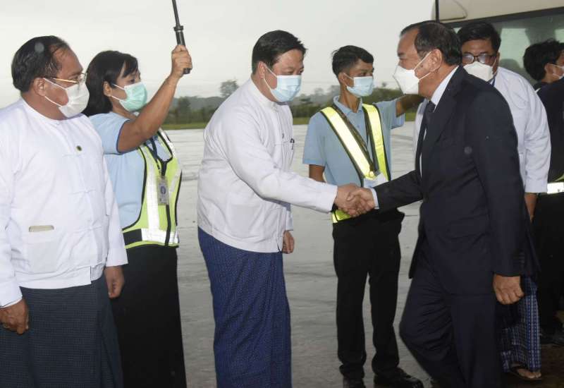 ကမ္ဘောဒီးယားနိုင်ငံ ဒုတိယဝန်ကြီးချုပ် နိုင်ငံခြားရေးနှင့် အပြည်ပြည်ဆိုင်ရာ ပူးပေါင်း ဆောင်ရွက်ရေးဝန်ကြီးနှင့် အာဆီယံဥက္ကဋ္ဌ၏ အထူးကိုယ်စားလှယ် မစ္စတာ ပရပ်ဆုတ်ခွန်းနှင့် ကိုယ်စားလှယ်အဖွဲ့သည် ယမန်နေ့မွန်းလွဲပိုင်းတွင် ရန်ကုန်အပြည်ပြည်ဆိုင်ရာ လေဆိပ်သို့ရောက်ရှိရာ နိုင်ငံခြားရေးဝန်ကြီးဌာန၊ မဟာဗျူဟာလေ့လာရေးနှင့် လေ့ကျင့်ရေးဦးစီးဌာန ညွှန်ကြားရေးမှူးချုပ် ဦးဇော်ဖြိုးဝင်းက ကြိုဆိုသည်။