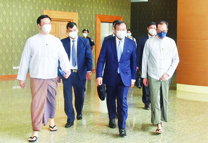 နိုင်ငံတော်စီမံအုပ်ချုပ်ရေးကောင်စီအဖွဲ့ဝင်၊ ပြည်ထောင်စုအစိုးရအဖွဲ့ရုံး ဝန်ကြီးဌာန(၁) ပြည်ထောင်စုဝန်ကြီး၊ အမျိုးသားစည်းလုံးညီညွတ်ရေးနှင့် ငြိမ်းချမ်းရေး ဖော်ဆောင်မှု ညှိနှိုင်းရေး ကော်မတီဥက္ကဋ္ဌ ဒုတိယဗိုလ်ချုပ်ကြီးရာပြည့်သည် အာဆီယံအလှည့်ကျ ဥက္ကဋ္ဌ၏ မြန်မာနိုင်ငံဆိုင်ရာ အထူးကိုယ်စားလှယ်၊ ကမ္ဘောဒီးယားနိုင်ငံ ဒုတိယဝန်ကြီးချုပ်၊ နိုင်ငံခြားရေးနှင့် အပြည်ပြည်ဆိုင်ရာ ပူးပေါင်းဆောင်ရွက်ရေးဝန်ကြီး H.E. Mr. Prak Sokhonn ဦးဆောင်သည့် ကိုယ်စားလှယ်အဖွဲ့အား ယနေ့နံနက်ပိုင်းတွင် နေပြည်တော်ရှိ အမျိုးသားစည်းလုံးညီညွတ်ရေးနှင့် ငြိမ်းချမ်းရေး ဖော်ဆောင်မှုဗဟိုဌာန အစည်းအဝေးခန်းမ၌ လက်ခံတွေ့ဆုံသည်။