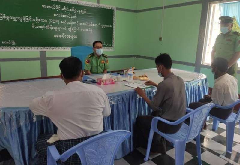 တိုင်းရင်းသားလက်နက်ကိုင်အဖွဲ့နယ်မြေအတွင်း သင်တန်းများတက်ရောက်ခဲ့ပြီး ပြစ်မှုကျူးလွန်ခြင်းမရှိဘဲ ဥပဒေဘောင်အတွင်း ပြန်လည်ဝင်ရောက်လာသော PDF အဖွဲ့ဝင်များအား ၎င်းတို့၏ မိဘအုပ်ထိန်းသူများထံသို့ ထပ်မံလွှဲပြောင်းပေးအပ်ခြင်းကို ယနေ့နံနက်ပိုင်းတွင် မကွေးတိုင်းဒေသကြီး၊ စလင်းမြို့နယ်စီမံအုပ်ချုပ်ရေးကောင်စီရုံးနှင့် ပဲခူးတိုင်းဒေသကြီး၊ တောင်ငူမြို့ရှိ ခရိုင်အထွေထွေအုပ်ချုပ်ရေးမှူးရုံးခန်းမတို့၌ ပြုလုပ်ကြရာ သက်ဆိုင်ရာတိုင်းစစ်ဌာနချုပ်များမှ ဒုတိယတိုင်းမှူးနှင့် တာဝန်ရှိသူများ၊ ဥပဒေဘောင်အတွင်း ဝင်ရောက်လာသူများနှင့် ၎င်းတို့၏ မိဘအုပ်ထိန်းသူများ တက်ရောက်ကြသည်။