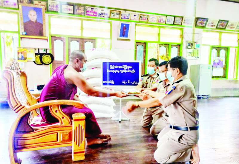 ပြည်ထဲရေးဝန်ကြီးဌာနတပ်ဖွဲ့ဝင်/ဝန်ထမ်းအရာထမ်း၊ အမှုထမ်းမိသားစုများက မြို့နယ်အသီးသီးရှိ ဘုန်းတော်ကြီးကျောင်းများသို့ ဆွမ်းဆန်တော်များ ဆက်ကပ်လှူဒါန်းခြင်းကို ဆောင်ရွက်လျက်ရှိသည်။
