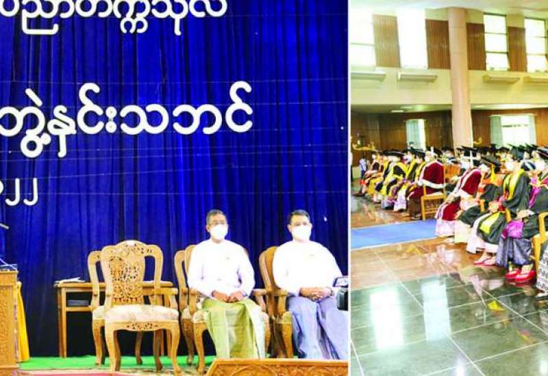 ပြည်ထောင်စုရာထူးဝန်အဖွဲ့ နိုင်ငံ့ဝန်ထမ်းတက္ကသိုလ်(အောက်မြန်မာပြည်)တွင် ဖွင့်လှစ်ခဲ့သည့် ဝန်ထမ်းအဖွဲ့အစည်း ဒုတိယအကြီးအမှူးစီမံခန့်ခွဲမှု သင်တန်းအမှတ်စဉ်(၄)နှင့် အဆင့်မြင့်အရာထမ်းစီမံခန့်ခွဲမှုသင်တန်း အမှတ်စဉ်(၁၇)တို့၏ သင်တန်းဆင်းပွဲ အခမ်းအနားကို ယနေ့နံနက် ၈ နာရီတွင် နိုင်ငံ့ဝန်ထမ်းတက္ကသိုလ် (အောက်မြန်မာပြည်) ကေတုမတီခန်းမ၌ ကျင်းပရာ ပြည်ထောင်စုရာထူးဝန် အဖွဲ့တာဝန်ခံအဖွဲ့ဝင် ဦးစိုးတင့်၊ နိုင်ငံ့ဝန်ထမ်း တက္ကသိုလ် (အောက်မြန်မာပြည်)မှ ပါမောက္ခချုပ် ဦးဇော်ဇော်၊ ဒုတိယပါမောက္ခချုပ်များ၊ ဌာနကြီးမှူးများ၊ တက္ကသိုလ်သင်ကြားရေး/စီမံဌာနများမှ ပါမောက္ခဆရာ ဆရာမများ၊ သင်တန်းသား သင်တန်းသူများ တက်ရောက်ကြသည်။