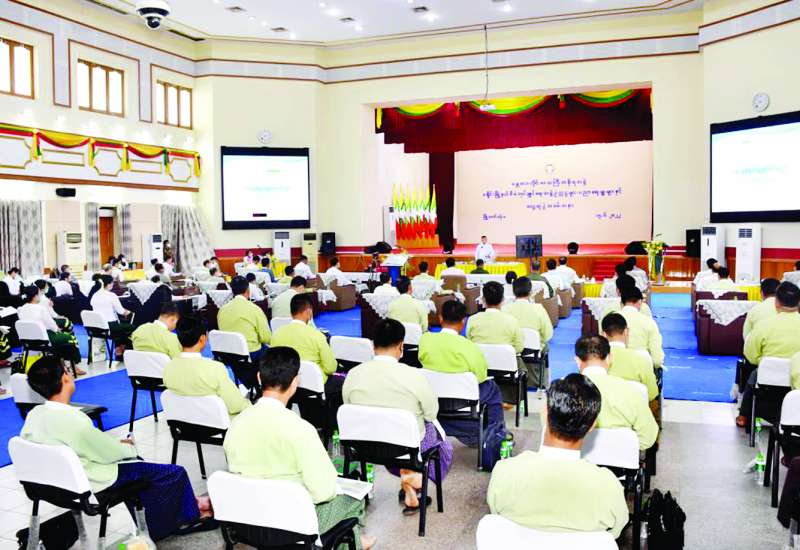 မန္တလေးတိုင်းဒေသကြီးအတွင်းရှိ ခရိုင်/မြို့နယ်များမှ စီမံအုပ်ချုပ်ရေးအဖွဲ့ဥက္ကဋ္ဌများနှင့် ပညာရေးမှူးများအား တွေ့ဆုံပွဲကို ယနေ့နံနက်ပိုင်းတွင် မန္တလေးမြို့တော် စည်ပင်သာယာရေးကော်မတီရုံး မြို့တော်ခန်းမ၌ ပြုလုပ်ရာ မန္တလေးတိုင်းဒေသကြီး ဝန်ကြီးချုပ် ဦးမောင်ကို၊ တိုင်းဒေသကြီးဝန်ကြီးများ၊ ဌာနဆိုင်ရာ တာဝန်ရှိသူများနှင့် ဖိတ်ကြားထားသူများ တက်ရောက်ကြသည်။