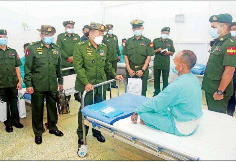 နိုင်ငံတော်စီမံအုပ်ချုပ်ရေးကောင်စီဒုတိယဥက္ကဋ္ဌ ဒုတိယတပ်မတော်ကာကွယ်ရေးဦးစီးချုပ် ကာကွယ်ရေးဦးစီးချုပ်(ကြည်း) ဒုတိယဗိုလ်ချုပ်မှူးကြီး စိုးဝင်း သည် ကာကွယ်ရေးဦးစီးချုပ်ရုံး(ကြည်း)မှ ဒုတိယဗိုလ်ချုပ်ကြီးဖုန်းမြတ်၊ ကာကွယ်ရေးဦးစီးချုပ်ရုံးမှ တပ်မတော်အရာရှိကြီးများ၊ အနောက်ပိုင်းတိုင်းစစ်ဌာချုပ်တိုင်းမှူးတို့ လိုက်ပါ၍ ယနေ့နံနက်ပိုင်းတွင် စစ်တွေမြို့ရှိ တပ်မတော်ဆေးရုံသို့ သွားရောက်ကြည့်ရှုပြီး ဆေးရုံတက်ရောက်ဆေးကုသမှုခံယူလျက်ရှိသည့် အရာရှိ၊ စစ်သည်။ မိသားစုများအား ကြည့်ရှုအားပေးစကား ပြောကြားသည်။