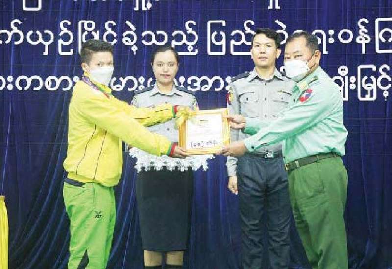 ဗီယက်နမ်နိုင်ငံတွင် ကျင်းပခဲ့သော (၃၁) ကြိမ်မြောက် အရှေ့တောင်အာရှ အားကစားပြိုင်ပွဲတွင် ဆုတံဆိပ်များရရှိအောင် စွမ်းဆောင်နိုင်ခဲ့သည့် နိုင်ငံ့ ဂုဏ်ဆောင်၊ ပြည်ထဲရေးဝန်ကြီးဌာနဂုဏ်ဆောင် အားကစားသမားများနှင့် နည်းပြများအား ဂုဏ်ပြုမှတ်တမ်းလွှာနှင့် ဂုဏ်ပြုဆုငွေများ ပေးအပ်ချီးမြှင့်ခြင်း အခမ်းအနားကို ယနေ့ ညနေ ၃ နာရီတွင် နေပြည်တော်ရှိ ရုံးအမှတ် (၈) မြန်မာနိုင်ငံရဲတပ်ဖွဲ့ဌာနချုပ် အရိန္ဒမာခန်းမ၌ကျင်းပရာ နိုင်ငံတော်စီမံအုပ်ချုပ်ရေး ကောင်စီဝင် ပြည်ထဲရေးဝန်ကြီးဌာန ပြည်ထောင်စုဝန်ကြီး ဒုတိယဗိုလ်ချုပ်ကြီးစိုးထွဋ် တက်ရောက်ဂုဏ်ပြုအမှာစကားပြောကြားပြီး ဂုဏ်ပြုမှတ်တမ်းလွှာနှင့် ဂုဏ်ပြုဆုငွေများ ပေးအပ်ချီးမြှင့်သည်။