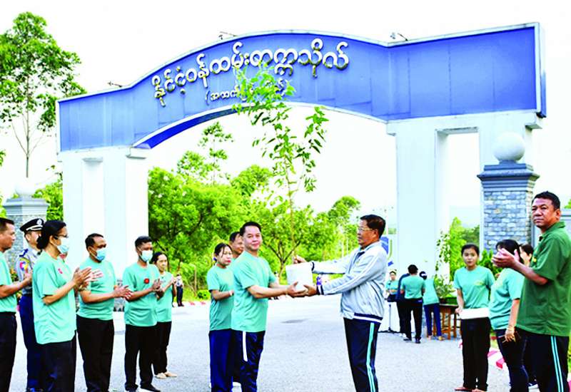 ပို့ဆောင်ရေးနှင့်ဆက်သွယ်ရေးဝန်ကြီးဌာန၏ ၂၀၂၂ ခုနှစ် မိုးရာသီသစ်ပင်စိုက်ပျိုးပွဲတော်ကို ယနေ့နံနက် ၇ နာရီတွင် မြန်မာ့မီးရထား နေပြည်တော် ဘူတာကြီးအနီးရှိ မြေကွက်လပ်တွင် ကျင်းပရာ ပို့ဆောင်ရေးနှင့် ဆက်သွယ်ရေးဝန်ကြီးဌာန ပြည်ထောင်စုဝန်ကြီး ဗိုလ်ချုပ်ကြီး တင်အောင်စန်းနှင့် ဇနီး၊ ဒုတိယဝန်ကြီးများ၊ အမြဲတမ်းအတွင်းဝန်များ၊ ညွှန်ကြားရေးမှူးချုပ်များ၊ ဦးဆောင်ညွှန်ကြားရေးမှူးများနှင့် ၎င်းတို့၏ဇနီးများ၊ မြန်မာ့မီးရထားမှ အရာထမ်း၊ အမှုထမ်းများ တက်ရောက်ကြသည်။