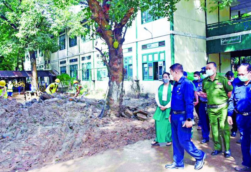 ရန်ကုန်တိုင်းဒေသကြီး စည်ပင်သာယာရေးဝန်ကြီး၊ ရန်ကုန်မြို့တော်စည်ပင်သာယာရေးကော်မတီဥက္ကဋ္ဌ (မြို့တော်ဝန်) ဦးဗိုလ်ဌေးသည် ဒုတိယဥက္ကဋ္ဌ (ဒုတိယ မြို့တော်ဝန်)ဦးညီညီ၊ အတွင်းရေးမှူး ဦးညွန့်ဖေနှင့် ကော်မတီဝင်များနှင့်အတူ ယနေ့ နံနက် ၇ နာရီတွင် အင်းစိန်မြို့နယ် စဉ့်ငူရပ်ကွက် အောက်မင်္ဂလာဒုံလမ်းရှိ ဆေးဘက်ဆိုင်ရာ နည်းပညာတက္ကသိုလ် (ရန်ကုန်)ကျောင်းသို့ သွားရောက်၍ မြို့နယ်စီမံအုပ်ချုပ်ရေးအဖွဲ့နှင့် စည်ပင်သာယာအုပ်ချုပ်ရေးမှူးရုံးတို့၏