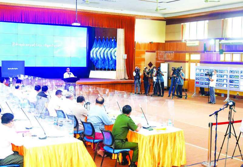နိုင်ငံတော်စီမံအုပ်ချုပ်ရေးကောင်စီ၊ သတင်းထုတ်ပြန်ရေးအဖွဲ့၏ (၁၅)ကြိမ်မြောက် သတင်းစာရှင်းလင်းပွဲကို ၂၀၂၂ ခုနှစ်၊ ဇွန် ၁ ရက် မွန်းလွဲ ၁ နာရီတွင် ပြန်ကြားရေးဝန်ကြီးဌာန၌ ကျင်းပပြုလုပ်ရာ နိုင်ငံတော်စီမံအုပ်ချုပ်ရေးကောင်စီ၊ သတင်းထုတ်ပြန်ရေးအဖွဲ့ခေါင်းဆောင် ဗိုလ်ချုပ်ဇော်မင်းထွန်း၊ ပြည်ထောင်စုရွေးကောက်ပွဲကော်မရှင်အဖွဲ့ဝင် ဦးခင်မောင်ဦး၊ ဌာနဆိုင်ရာများမှ ပြောရေးဆိုခွင့်ရှိသူများနှင့်ဌာနဆိုင်ရာ သတင်းထုတ်ပြန်ရေးအဖွဲ့ ကိုယ်စားလှယ်များက သတင်းမီဒီယာများ၏ သိရှိလိုသည့် မေးမြန်းမှုများကို ပြန်လည်ဖြေကြားကြသည်။