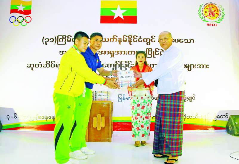 ဗီယက်နမ်နိုင်ငံတွင်ကျင်းပပြုလုပ်ခဲ့သည့် (၃၁)ကြိမ်မြောက် အရှေ့တောင်အာရှ အားကစားပြိုင်ပွဲတွင် ဆုတံဆိပ်များရရှိအောင် စွမ်းဆောင်နိုင်ခဲ့သည့် နိုင်ငံ့ဂုဏ်ဆောင်၊ တပ်မတော်ဂုဏ်ဆောင် အားကစားသမားများနှင့် နည်းပြများအား ဂုဏ်ထူးဆောင်လက်မှတ်၊ ဂုဏ်ပြုမှတ်တမ်းလွှာနှင့် ဂုဏ်ပြုဆုငွေများ ပေးအပ်ချီးမြှင့်ခြင်း အခမ်းအနားကို ယနေ့မွန်းလွဲပိုင်းတွင် နေပြည်တော်ရှိ ဘုရင့်နောင်ရိပ်သာ ဧည့်ခန်းမဆောင်၌ ကျင်းပပြုလုပ်ရာ နိုင်ငံတော်စီမံအုပ်ချုပ်ရေးကောင်စီဥက္ကဋ္ဌ၊ တပ်မတော်ကာကွယ်ရေးဦးစီးချုပ် ဗိုလ်ချုပ်မှူးကြီးမင်းအောင်လှိုင် တက်ရောက်ဂုဏ်ပြုအမှာစကားပြောကြားပြီး ဆုများပေးအပ်ချီးမြှင့်သည်။