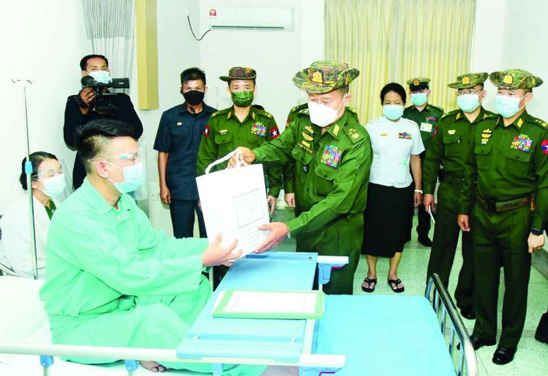 နိုင်ငံတော်စီမံအုပ်ချုပ်ရေးကောင်စီ ဒုတိယဥက္ကဋ္ဌ ဒုတိယတပ်မတော် ကာကွယ်ရေးဦးစီးချုပ် ကာကွယ်ရေးဦးစီးချုပ်(ကြည်း) ဒုတိယဗိုလ်ချုပ်မှူးကြီး စိုးဝင်းသည် ကာကွယ်ရေးဦးစီးချုပ်ရုံး(ကြည်း)မှ ဒုတိယဗိုလ်ချုပ်ကြီး သက်ပုံ၊ ကာကွယ်ရေးဦးစီးချုပ်ရုံးမှ တပ်မတော်အရာရှိကြီးများ၊ ရန်ကုန်တိုင်းစစ်ဌာနချုပ် တိုင်းမှူးတို့ လိုက်ပါ၍ ယနေ့နံနက်ပိုင်းတွင် ရန်ကုန်တိုင်းဒေသကြီး မင်္ဂလာဒုံမြို့နယ် တပ်မတော်ဆေးရုံကြီး ခုတင် (၁၀၀၀)တွင် ဆေးရုံတက်ရောက် ဆေးကုသမှုခံယူလျက်ရှိသည့် အရာရှိ၊ စစ်သည်၊ မိသားစုများအား ကြည့်ရှုအားပေးစကား ပြောကြားသည်။
