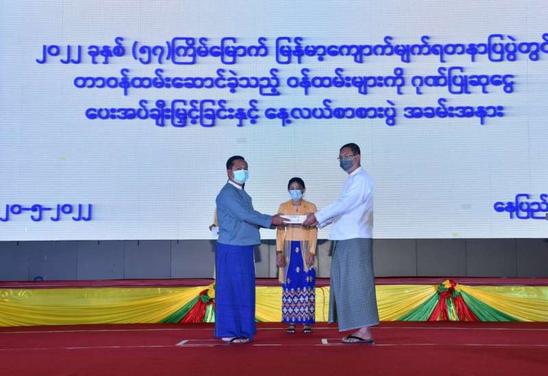 ပြည်ထောင်စုရာထူးဝန်အဖွဲ့၏ ၂၀၂၂-၂၀၂၃ ပညာသင်နှစ်အတွက် ပညာသင်ထောက်ပံ့ငွေ၊ ကျောင်းဝတ်စုံ၊ ကျောင်းသုံးစာရေးကိရိယာများ ထောက်ပံ့ပေးအပ်ခြင်း အခမ်းအနားကို ယနေ့နံနက် ၁၀ နာရီ၌ နေပြည်တော်ရှိ ပြည်ထောင်စုရာထူးဝန်အဖွဲ့၊ စုပေါင်းခန်းမတွင် ကျင်းပသည်။