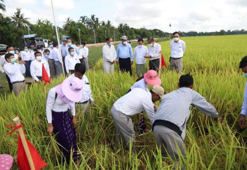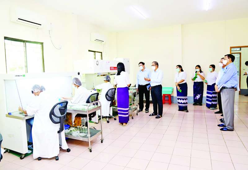 စိုက်ပျိုးရေး၊ မွေးမြူရေးနှင့် ဆည်မြောင်းဝန်ကြီးဌာန ပြည်ထောင်စုဝန်ကြီး ဦးတင်ထွဋ်ဦးသည်တာဝန်ရှိသူများနှင့်အတူ ယမန်နေ့နံနက်ပိုင်းက ရန်ကုန်မြို့ မင်္ဂလာဒုံမြို့နယ်ရှိ အပင်ဇီဝနည်းပညာ ဗဟိုဌာနသို့ရောက်ရှိပြီး ဇီဝနည်းပညာ လုပ်ငန်းဆောင်ရွက်နေမှုကို ကြည့်ရှုစစ်ဆေးသည်။