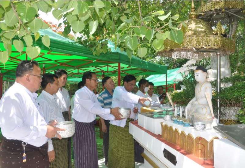 စက်မှုဝန်ကြီးဌာန၊ ဝန်ထမ်းများနှင့် ဝန်ထမ်းမိသားစုများ၏ ကဆုန်ညောင်ရေသွန်းလောင်းခြင်း အခမ်းအနားကို ယနေ့နံနက်ပိုင်းတွင် မဟာဗောဓိညောင်ပင်တည်ရှိသည့် ထီးသုံးလက်တောင်ကုန်း၌ ကျင်းပသည်။