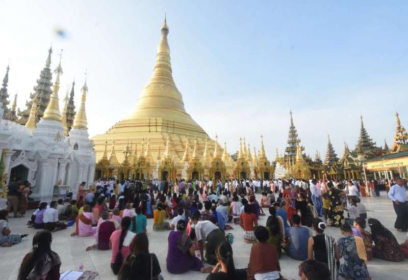 ဖွား၊ ပွင့်၊ ဟော၊ စံ ဗျာဒိတ်ခံသည့် ကဆုန်လပြည့်(ဗုဒ္ဓနေ့)သည် ဗုဒ္ဓဘာသာဝင်များ၏ နေ့ထူးနေ့မြတ်ဖြစ်သည့်အားလျော်စွာ ရန်ကုန်မြို့ရှိ ရွှေတိဂုံစေတီတော်မြတ်ကြီးအပါအဝင် ဘုရားစေတီများ၌ ဥပုသ်သီတင်းဆောက်တည်ကြသူများ၊ ကုသိုလ်ကောင်းမှု ပြုကြသူများ၊ ညောင်ရေသွန်းလောင်းကြသူများဖြင့် စည်ကားလျက်ရှိသည်ကို တွေ့မြင်ရသည်။