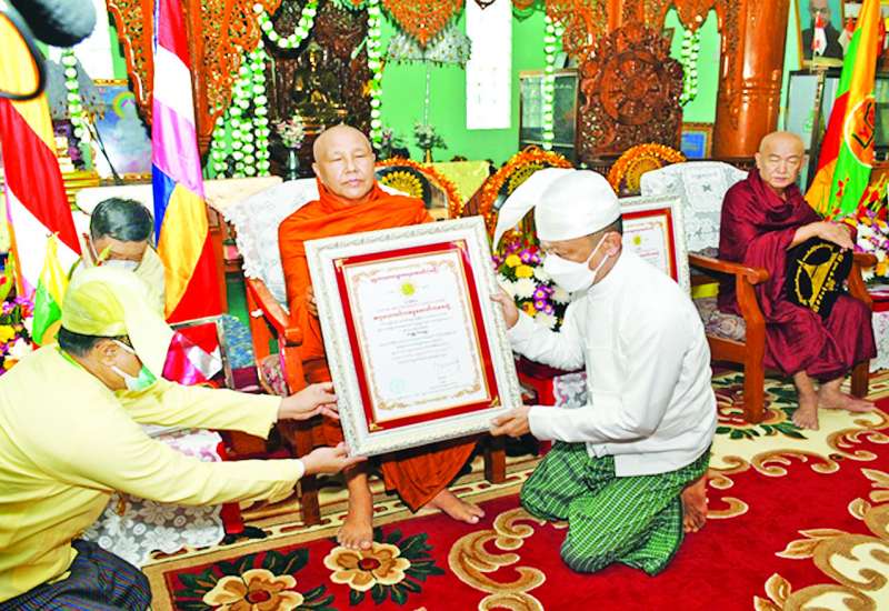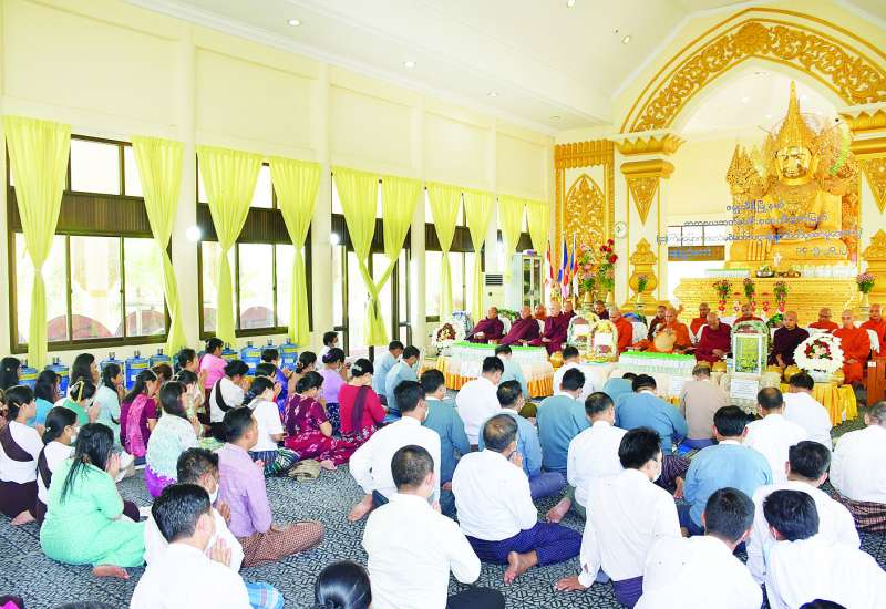ပြည်ထောင်စုနယ်မြေ နေပြည်တော် ဇမ္ဗူသီရိမြို့နယ်ရှိ ဓာတုစယဓာတ်ပေါင်းစု စေတီတော်မြတ်ကြီး (၄၁)ကြိမ်မြောက် အသံမစဲမဟာ ပဋ္ဌာန်းရွတ်ဖတ်ပူဇော်မှုပဋ္ဌာန်းသိမ်း အောင်ပွဲမင်္ဂလာအခမ်းအနားကို ယနေ့နံနက် ၈ နာရီက စေတီတော်မြတ်ကြီး ပရိဝုဏ်မဟာမြတ်မုနိ ရုပ်ရှင်တော်မြတ်၊ ဂန္ဓကုဋိကျောင်းဆောင်၊ အဘိသန္နဗိမာန်တော်၌ ကျင်းပပြုလုပ်ရာ နေပြည်တော် ဇမ္ဗူသီရိမြို့နယ် သပြေကုန်းရပ်ကွက် မစိုးရိမ်စာသင်တိုက် ပဓာနနာယကဆရာတော် ဘဒ္ဒန္တအဂ္ဂဓမ္မ အမှူးပြုသော သံဃာတော်အရှင်သူမြတ်များ ကြွရောက်တော်မူကြပြီး နေပြည်တော်စည်ပင်သာယာရေးကော်မတီမှ ဒုတိယမြို့တော်ဝန် ဦးမောင်မောင်၊ အမြဲတမ်းအတွင်းဝန်၊ ဌာနကြီးမှူးနှင့် ဌာနမှူးများ၊ အလှူရှင်ဧည့် ပရိသတ်များ တက်ရောက်ကြည်ညိုကြသည်။