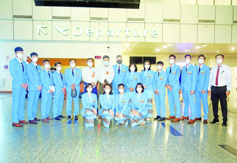 ဗီယက်နမ်နိုင်ငံ ဟနွိုင်းမြို့နှင့် အခြားဆက်စပ်မြို့များတွင် ကျင်းပပြုလုပ်မည့် (၃၁) ကြိမ် မြောက် အရှေ့တောင်အာရှ အားကစားပြိုင်ပွဲသို့ ပါဝင်ယှဉ်ပြိုင် ရန်အတွက် မြန်မာအားကစားအဖွဲ့ စတုတ္ထအသုတ်သည် ယနေ့နံနက် ၇ နာရီတွင် ဗီယက်နမ်နိုင်ငံ ဟနွိုင်းမြို့သို့ ရန်ကုန် အပြည်ပြည်ဆိုင်ရာ လေဆိပ်မှ မြန်မာ့လေကြောင်း စင်းလုံးငှားလေယာဉ်ဖြင့် ထွက်ခွာသွားသည်။