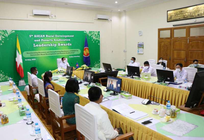 (၅)ကြိမ်မြောက် အာဆီယံ ကျေးလက်ဒေသဖွံ့ဖြိုးရေးနှင့် ဆင်းရဲမှုပပျောက်ရေးဆိုင်ရာ ခေါင်းဆောင်မှုအရည်အချင်း ဆုပေးပွဲအခမ်းအနားကို ယနေ့ မွန်းလွဲပိုင်းတွင် ဖိလစ်ပိုင်နိုင်ငံ ဆင်းရဲမှုပပျောက်ရေးကော်မရှင်နှင့် အာဆီယံ အတွင်းရေးမှူးချုပ်ရုံးတို့ ပူးပေါင်း၍ ဗီဒီယိုကွန်ဖရင့်စနစ်ဖြင့် ကျင်းပသည်။