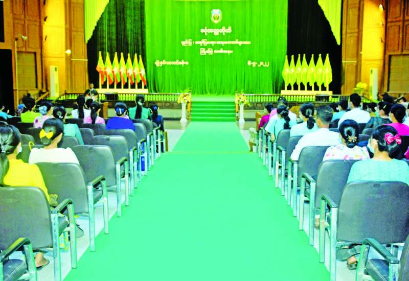 သမဝါယမနှင့်ကျေးလက်ဖွံ့ဖြိုးရေးဝန်ကြီးဌာန ပထမအကြိမ် စုပေါင်းဒုလ္လဘ ရဟန်းခံ၊ ရှင်ပြု၊ သီလရှင်ဝတ်အလှူတော် မင်္ဂလာအခမ်းအနားကို ယနေ့တွင် သီရိဂန္ဓမာသပြေအေး မိုးကုတ် ဝိပဿနာကျောင်းတိုက်၌ကျင်းပရာ နိုင်ငံတော် ကောင်စီဝင်များနှင့်ဇနီးများ၊ သမဝါယမနှင့် ကျေးလက်ဖွံ့ဖြိုးရေးဝန်ကြီးဌာန ပြည်ထောင်စုဝန်ကြီး ဦးလှမိုးနှင့်ဇနီး ဒေါ်ကြည်ကြည်မေ၊ ပြည်ထောင်စုဝန်ကြီးများနှင့်ဇနီးများ၊ ဖိတ်ကြားထားသော ဧည့်သည်တော်များ တက်ရောက်ကြသည်။