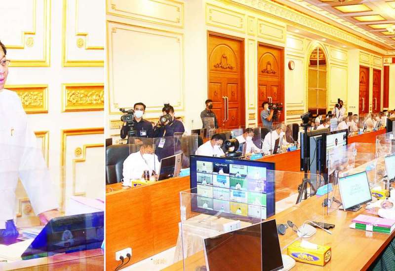 ပြည်ထောင်စုအစိုးရအဖွဲ့ အစည်းအဝေးကို ယနေ့နံနက်ပိုင်းတွင် (၂၀၂၂/၃) နေပြည်တော်ရှိ နိုင်ငံတော် စီမံအုပ်ချုပ်ရေးကောင်စီဥက္ကဋ္ဌရုံး အစည်းအဝေးခန်းမ၌ ကျင်းပရာ နိုင်ငံတော်စီမံအုပ်ချုပ်ရေး ကောင်စီဥက္ကဋ္ဌ၊ နိုင်ငံတော်ဝန်ကြီးချုပ် ဗိုလ်ချုပ်မှူးကြီး မင်းအောင်လှိုင် တက်ရောက်အမှာစကား ပြောကြားသည်။