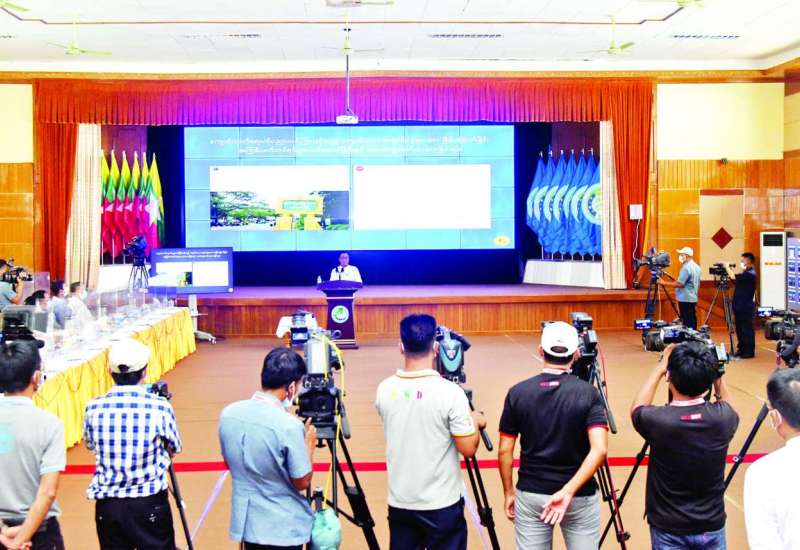 နိုင်ငံတော်စီမံအုပ်ချုပ်ရေးကောင်စီ၊ သတင်းထုတ်ပြန်ရေးအဖွဲ့၏ (၁၃)ကြိမ်မြောက် သတင်းစာ ရှင်းလင်းပွဲကို ၂၀၂၂ ခုနှစ်၊ ဧပြီ ၂၇ ရက် မွန်းလွဲ ၁ နာရီတွင် ပြန်ကြားရေးဝန်ကြီးဌာန၊ ဝန်ကြီးရုံး စုပေါင်း အစည်းအဝေးခန်းမ၌ ကျင်းပပြုလုပ်သည်။