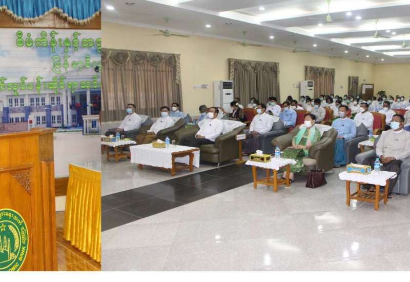 ပြည်သူများ၊ စီးပွားရေးလုပ်ငန်းများနှင့် အဖွဲ့အစည်းများအတွက် ဘဏ်လုပ်ငန်းဝန်ဆောင်မှု များကို အပြည့်အဝပံ့ပိုးကူညီဆောင်ရွက်ပေးရန် ရည်ရွယ်ဖွင့်လှစ်သည့် မြန်မာ့စီးပွားရေးဘဏ်၊ လက်ထောက်မန်နေဂျာများ ဘဏ်လုပ်ငန်းဆိုင်ရာ သင်တန်းအမှတ်စဉ် (၁/၂၀၂၂-၂၀၂၃) သင်တန်း ဖွင့်ပွဲအခမ်းအနားကို ယနေ့ နံနက် ၉ နာရီခွဲတွင် နေပြည်တော်ရှိ မြန်မာ့စီးပွားရေးဘဏ် (ရုံးချုပ်) ၌ ကျင်းပသည်။