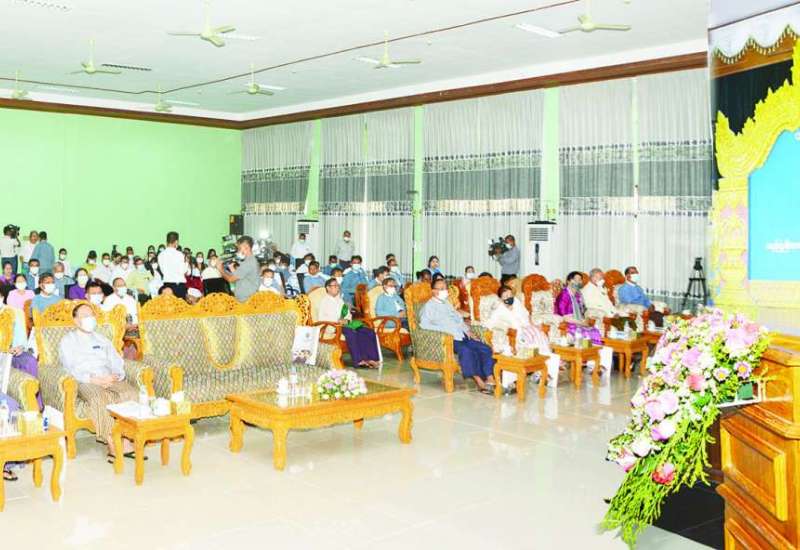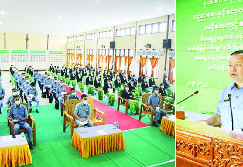 နယ်စပ်ရေးရာဝန်ကြီးဌာန ပညာ ရေးနှင့် လေ့ကျင့်ရေးဦးစီးဌာန ဗဟိုလေ့ကျင့်ရေး ကျောင်းတွင် ဝန်ထမ်းများ လုပ်ငန်းစွမ်းဆောင် ရည်မြှင့်တင်ရေး သင်တန်းများ ဖြစ်သော စီမံခန့်ခွဲရေးသင်တန်း အမှတ်စဉ်(၇၆)၊ အဆင့်မြင့် စက်ချုပ်နည်းပြသင်တန်း အမှတ် စဉ်(၄၀)၊ စာရေးဝန်ထမ်းသင်တန်း အမှတ်စဉ်(၁၁၀) သင်တန်းများ ဖွင့်ပွဲအခမ်းအနားကို ယမန်နေ့ နံနက် ၈ နာရီခွဲတွင် သင်တန်း ကျောင်းခန်းမ၌ ကျင်းပခဲ့ရာ နယ်စပ်ရေးရာ ဝန်ကြီးဌာန အမြဲတမ်းအတွင်းဝန် ဦးသိန်း ဌေးဦး တက်ရောက်၍ သင်တန်း ဖွင့် အမှာစကားပြောကြားသည်။