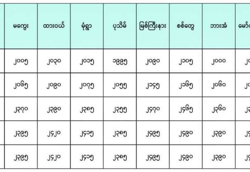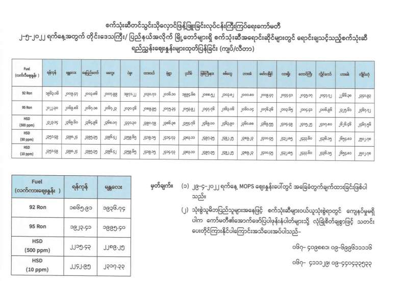 မှတ်ချက်။ (၁) MOPS ဈေးနှုန်းပေါ်တွင် အခြေခံတွက်ချက်ထားခြင်းဖြစ်ပါသည်။