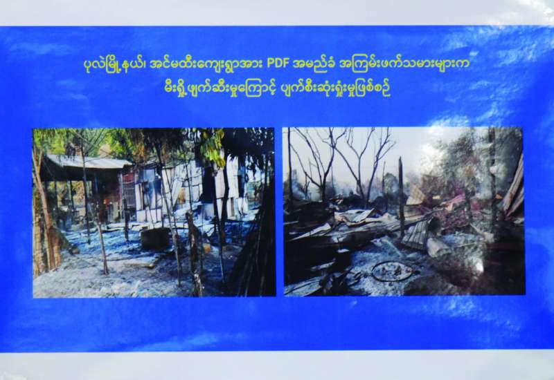 နိုင်ငံရေးအစွန်းရောက် PDF အမည်ခံ အကြမ်းဖက်သမားများအနေဖြင့် ဒေသန္တရ လက်လုပ်ဗုံး၊ လက်လုပ်မိုင်းများအသုံးပြု၍ စစ်ရေးပစ်မှတ်မဟုတ်သည့် အပြစ်မဲ့ပြည်သူများအား မိုင်းထောင် ဖောက်ခွဲတိုက်ခိုက်ခြင်း၊ လက်နက်ကြီး၊ လက်နက်ငယ်များအသုံးပြု၍ မြို့/ရွာများအတွင်းသို့ အဆင်အခြင်မဲ့ ရက်စက်စွာ အကြမ်းဖက်ပစ်ခတ်တိုက်ခိုက်ခြင်းများအား ပြုလုပ်လျက်ရှိသည်ကို တွေ့ရှိရပါသည်။