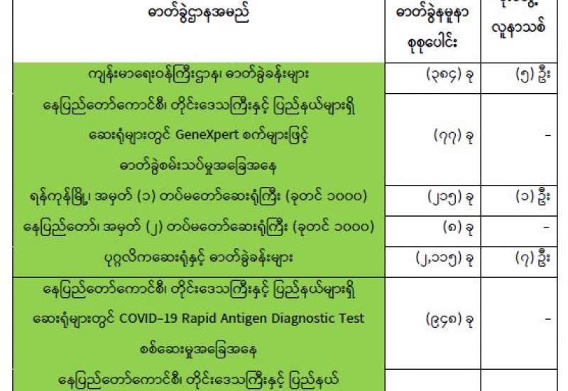ကျန်းမာရေးဝန်ကြီးဌာနအနေဖြင့် နိုင်ငံအတွင်း ကူးစက်ဖြစ်ပွားနေသော COVID-19 ရောဂါ ကာကွယ်၊ ကုသ၊ ထိန်းချုပ်ရေးလုပ်ငန်းများကို အရှိန်အဟုန်မြှင့် ဆောင်ရွက်လျက်ရှိရာ ရောဂါ ထိန်းချုပ် ရေးလုပ်ငန်းများ အောင်မြင်နိုင်ရေးအတွက် ပြည်သူလူထုအနေဖြင့် ကျန်းမာရေး ဝန်ကြီးဌာနမှ ထုတ်ပြန်ထားသော COVID-19 ရောဂါ ကာကွယ်ထိန်းချုပ်ရေး ဆိုင်ရာ စည်းကမ်းများကို စနစ်တကျ လိုက်နာဆောင်ရွက်ရန် လိုအပ်ပြီး COVID-19 ကာကွယ်ဆေးထိုးနှံမှု ခံယူခြင်းအား အထူး ဂရုပြု ပူးပေါင်းဆောင်ရွက်ကြရန် လိုအပ်ပါသည်။