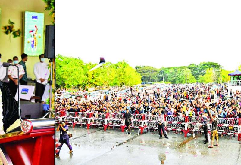 မြန်မာသက္ကရာဇ် ၁၃၈၃ ခုနှစ် မြန်မာ့ရိုးရာ မဟာသင်္ကြန်ပွဲတော်အတက်နေ့တွင် တိုင်းဒေသကြီးနှင့် ပြည်နယ်များရှိ မြို့နယ်များ၊ တိုင်းစစ်ဌာနချုပ် အသီးသီးရှိ ရေကစားမဏ္ဍပ် များ၌ အရာရှိ၊ စစ်သည်၊ မိသားစုများ၊ ယိမ်းအကအဖွဲ့များ၊ ခေတ်ပေါ်တေးဂီတ အဖွဲ့များ၊ အတာရေသဘင်ပွဲဆင်နွှဲသူများဖြင့် စည်ကားသိုက်မြိုက်စွာ ဆက်လက်ဆင်နွှဲလျက် ရှိသည်။