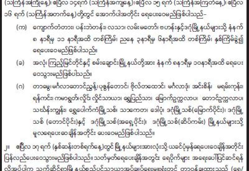 ၁၃၈၃ ခုနှစ် သင်္ကြန်ရက်များအတွင်း ရေပေးဝေရေးအစီအစဉ်