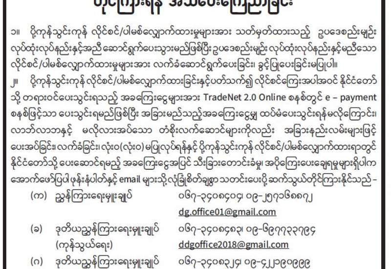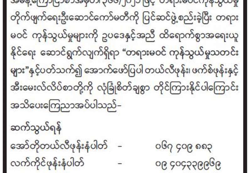 တရားမဝင် မမှန်မကန်ဆောင်ရွက်သည့် ကိစ္စရပ်များရှိပါက တိုင်ကြားရန် အသိပေးကြေညာခြင်း