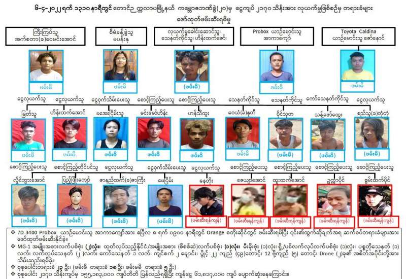 ၂၀၂၂ ခုနှစ်၊ ဧပြီလ ၆ ရက် မွန်းလွဲ ၁ နာရီ ၁၀ မိနစ်တွင် ရန်ကုန်တိုင်းဒေသကြီး၊ တောင်ဥက္ကလာပမြို့နယ်၊ သံသုမာလမ်းရှိ “ကမ္ဘောဇ” ဘဏ်ခွဲအတွင်းသို့ အမျိုးသား ၇ ဦးက ဘဏ်အကောင့်ပြုလုပ်လိုကြောင်းပြော၍ ဝင်ရောက်လာပြီး ဘဏ်အတွင်းကြိုတင်ရောက်ရှိနေသည့် အမျိုးသား ၂ ဦးတို့နှင့် ပူးပေါင်းကာ ဘဏ်လုံခြုံရေးဝန်ထမ်းတစ်ဦးအား ကျဉ်စက်ဖြင့်ထိုး၍ ဘဏ်ဝန်ထမ်းများနှင့် ဘဏ်အ တွင်း ငွေသွင်း၊ ငွေထုတ်ရန်ရောက်ရှိနေသူများ၏ လက်ကိုင်ဖုန်းများအား သေနတ်ပြခြိမ်းခြောက် လုယက်ယူဆောင်ကာ ဘဏ်အတွင်းစုထိုင်ခိုင်းပြီး ဘဏ်ကောင်တာအတွင်းနှင့် ကောင်တာအပေါ်၌ ထားရှိသည့် ငွေကျပ်သိန်း ၂၁၇၀ ခန့်ကို အသင့်ယူဆောင်လာသည့် လက်ကိုင်ပါပီနံအိတ် ၂ လုံး အတွင်းထည့်၍ ဓားပြတိုက်လုယက်ခဲ့သည့် ဖြစ်စဉ်ဖြစ်ပွားခဲ့သဖြင့် တောင်ဥက္ကလာပမြို့မရဲစခန်း (ပ)၁၆၇/ ၂၀၂၂၊ ရာဇသတ်ကြီး ပုဒ်မ ၃၉၅/၃၂၃ ဖြင့် အမှုဖွင့်လှစ်ကာ ပြစ်မှုကျူးလွန်သူများအား ဖော်ထုတ်ဖမ်းဆီးရမိနိုင်ရေး လုံခြုံရေးရဲတပ်ဖွဲ့ဝင်များက စုံစမ်းစစ်ဆေးခြင်းများ ဆောင်ရွက်ခဲ့သည်။