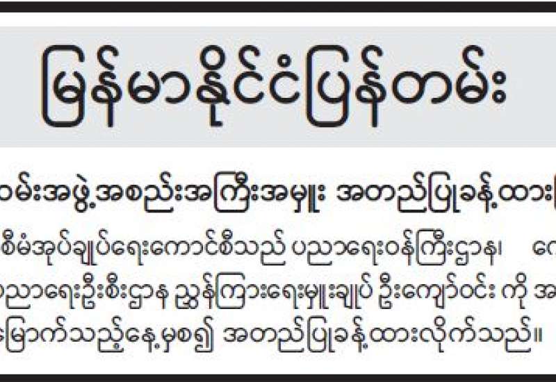 မြန်မာနှစ်သစ်ကူးရုံးပိတ်ရက်များအတွင်း ပြန်ကြားရေးဝန်ကြီးဌာန၊ သတင်းနှင့်စာနယ်ဇင်းလုပ်ငန်း၏ နေ့စဉ်ထုတ်သတင်းစာများကို အလှည့်ကျထုတ်ဝေမည်ဖြစ်ပါသည်။