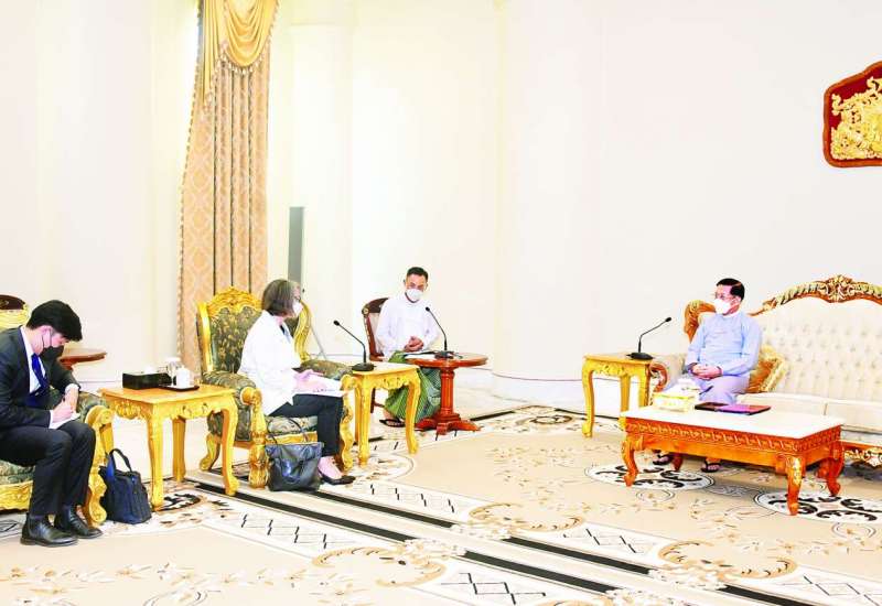 နိုင်ငံတော်စီမံအုပ်ချုပ်ရေးကောင်စီဥက္ကဋ္ဌ နိုင်ငံတော်ဝန်ကြီးချုပ် ဗိုလ်ချုပ်မှူးကြီး မင်းအောင်လှိုင်သည် မြန်မာနိုင်ငံတွင် တာဝန် ထမ်းဆောင်မှုပြီးဆုံး၍ ပြန်လည်ထွက်ခွာမည့် ဩစတြေးလျနိုင်ငံ သံအမတ်ကြီး H.E. Ms. Andrea Marie Faulkner အား ယနေ့မွန်းလွဲပိုင်း တွင် နေပြည်တော်ရှိ နိုင်ငံတော်စီမံအုပ်ချုပ်ရေးကောင်စီ ဥက္ကဋ္ဌရုံး ဧည့်ခန်းမဆောင်၌ လက်ခံတွေ့ဆုံသည်။