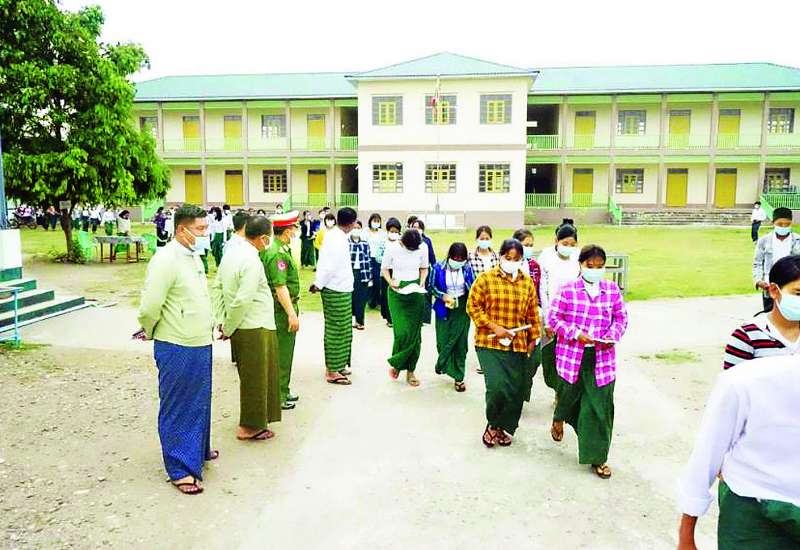 ပြန်ကြားရေးဝန်ကြီးဌာန ဒုတိယဝန်ကြီး ဦးရဲတင့်သည် ယနေ့နံနက်ပိုင်းတွင် စစ်ဗျူဟာမှူး၊ ခရိုင်အုပ်ချုပ်ရေးမှူးတို့နှင့်အတူ ခန္တီးမြို့ အခြေခံပညာအထက်တန်းကျောင်း၌ တက္ကသိုလ်ဝင်စာမေးပွဲ ဖြေဆိုနေမှုကို သွားရောက်ကြည့်ရှုပြီး ဖြေဆိုပြီးသော ကျောင်းသား ကျောင်းသူများနှင့် မိဘများအား တွေ့ဆုံအားပေးသည်။