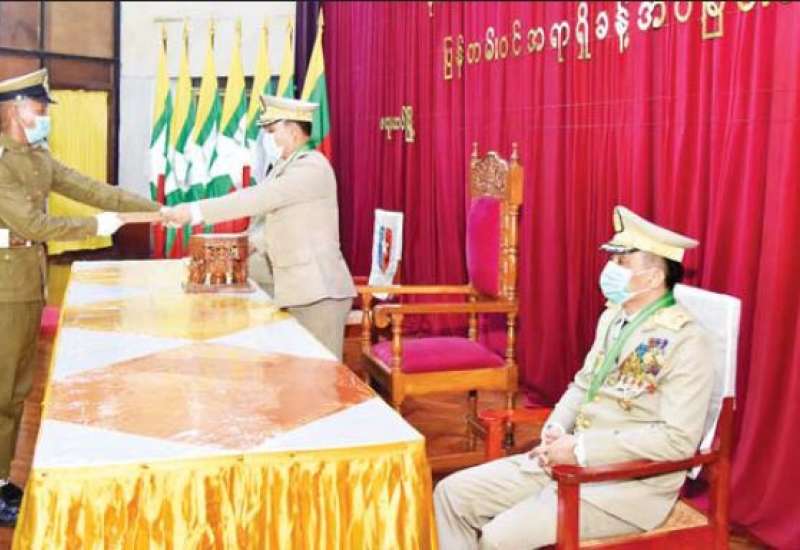 တပ်မတော်(ကြည်း) ဗိုလ်သင်တန်းကျောင်း(ဗထူး) ဗိုလ်လောင်းသင်တန်းအမှတ်စဉ် (၁၂၅) သီဟတပ်ခွဲ သင်တန်းဆင်း ဂုဏ်ပြုညစာ စားပွဲအခမ်းအနားကို ယနေ့ညပိုင်းတွင် ဗထူးမြို့၊ တပ်မတော်(ကြည်း) ဗိုလ်သင်တန်းကျောင်း(ဗထူး)၊ စစ်ရာထူးခန့်ထားရေး ခန်းမဆောင်၌ ကျင်းပရာ နိုင်ငံတော်စီမံအုပ်ချုပ်ရေး ကောင်စီဥက္ကဋ္ဌ တပ်မတော်ကာကွယ်ရေးဦးစီးချုပ်ဗိုလ်ချုပ်မှူးကြီး မဟာသရေစည်သူ မင်းအောင်လှိုင် ကိုယ်စား နိုင်ငံတော်စီမံအုပ်ချုပ်ရေးကောင်စီ ဒုတိယဥက္ကဋ္ဌ ဒုတိယတပ်မတော်ကာကွယ်ရေးဦးစီးချုပ် ကာကွယ်ရေး ဦးစီးချုပ်(ကြည်း) ဒုတိယ ဗိုလ်ချုပ်မှူးကြီး သရေစည်သူ စိုးဝင်း တက်ရောက်ချီးမြှင့်သည်။