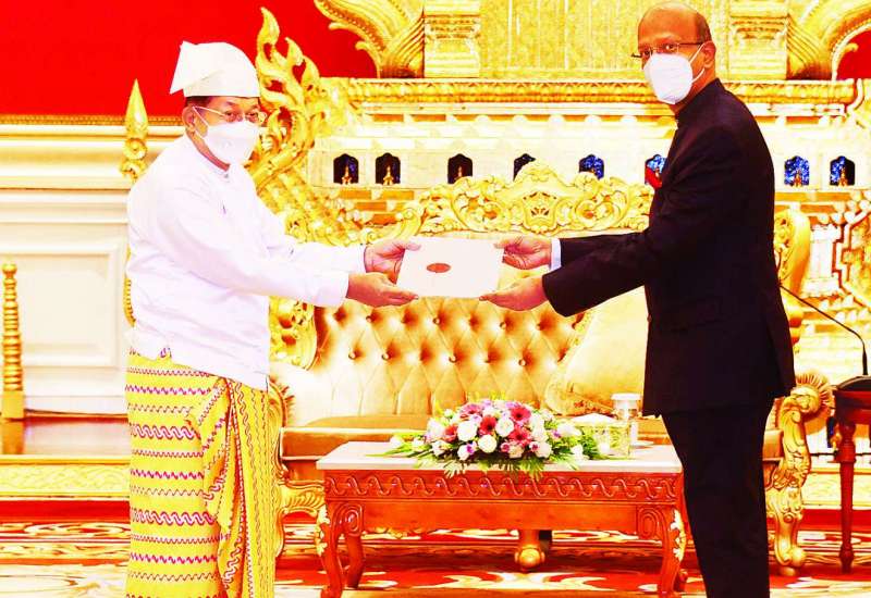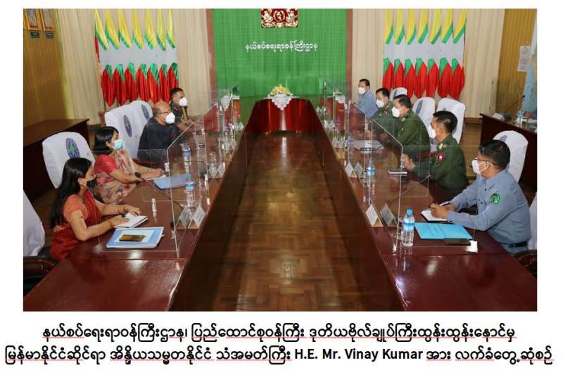 နိုင်ငံတော်စီမံအုပ်ချုပ်ရေးကောင်စီဥက္ကဋ္ဌ နိုင်ငံတော်ဝန်ကြီးချုပ် ဗိုလ်ချုပ်မှူးကြီး မင်းအောင်လှိုင်ထံ မြန်မာနိုင်ငံဆိုင်ရာ အိန္ဒိယနိုင်ငံ သံအမတ်ကြီးအဖြစ် ခန့်အပ်ရန် သဘောတူညီပြီးဖြစ်သော သံအမတ်ကြီး H.E. Mr. Vinay Kumar သည် ယနေ့နံနက်ပိုင်းတွင် နေပြည်တော်ရှိ နိုင်ငံတော် စီမံအုပ်ချုပ်ရေးကောင်စီ ဥက္ကဋ္ဌရုံး၊ သံတမန်ဆောင်ဧည့်ခန်းမ၌ ၎င်း၏သံအမတ်ခန့်အပ်လွှာကို ပေးအပ်သည်။