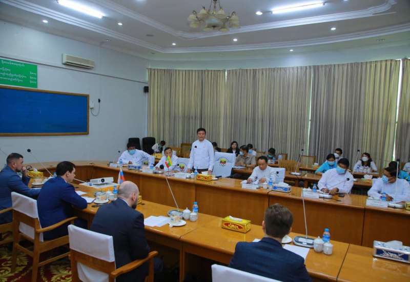 ပို့ဆောင်ရေးနှင့် ဆက်သွယ်ရေးဝန်ကြီးဌာန၊ ပြည်ထောင်စုဝန်ကြီး ဗိုလ်ချုပ်ကြီး တင်အောင်စန်းသည် ရင်းနှီးမြှုပ်နှံမှုနှင့် နိုင်ငံခြားစီးပွားဆက်သွယ်ရေး ဝန်ကြီးဌာန၏ ဖိတ်ကြားချက်အရ မြန်မာနိုင်ငံနှင့် ဥရောပ အာရှစီးပွားရေး သမဂ္ဂအဖွဲ့ဝင်နိုင်ငံများအကြား ပူးပေါင်းဆောင်ရွက်နိုင်ရန် အလားအလာရှိသော ရင်းနှီးမြှုပ်နှံမှုများနှင့် ကုန်သွယ်မှုများကို ဆွေးနွေးရန် မြန်မာနိုင်ငံသို့ ရောက်ရှိနေသော ကိုယ်စားလှယ်များအနက် Mr. Vitaly MALIEV, Vice President, Russia Association for Friendship & Cooperation with Myanmar ဦးဆောင်သော အဖွဲ့ဝင် (၁၄) ဦးပါ ဥရောပအာရှ စီးပွားရေးကော်မရှင်အဖွဲ့အား ယနေ့နံနက်ပိုင်းတွင် နေပြည်တော်ရှိ ပို့ဆောင်ရေးနှင့် ဆက်သွယ်ရေးဝန်ကြီးဌာန၌ လက်ခံတွေ့ဆုံသည်။