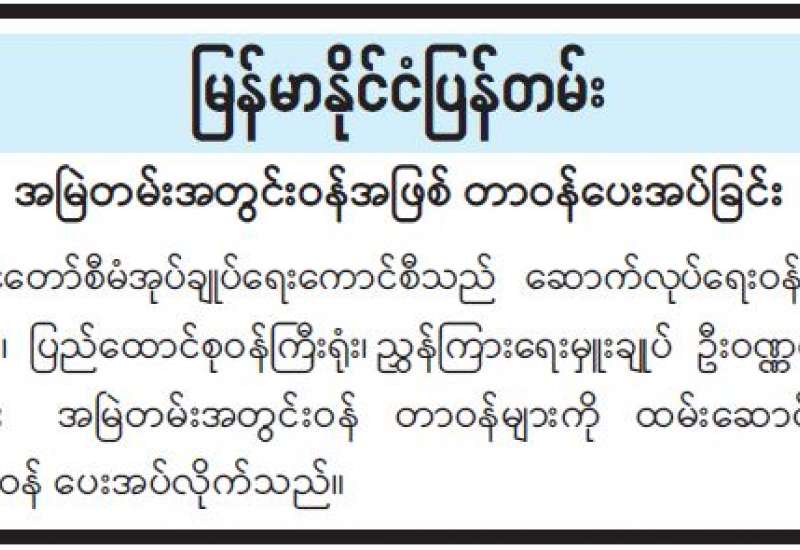 ဥပဒေရေးရာဝန်ကြီးဌာနတွင် တာဝန်ထမ်းဆောင်လျက်ရှိသောဝန်ထမ်းများအား ၂၀၂၂ ခုနှစ်၊ မဟာသင်္ကြန်ကာလအတွက် ထောက်ပံ့ငွေပေးအပ်ပွဲအခမ်းအနားကို ယနေ့ မွန်းလွဲ ၂ နာရီတွင် ကိုဗစ်-၁၉ ရောဂါ ကာကွယ်၊ ထိန်းချုပ်၊ ကုသရေးဗဟိုကော်မတီမှ ထုတ်ပြန်ထားသည့် ညွှန်ကြားချက်များနှင့်အညီ ဝန်ကြီးဌာန၊ မြေညီထပ်အစည်းအဝေးခန်းမ၌ ကျင်းပသည်။