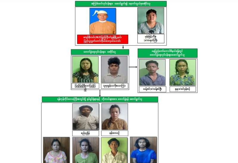 နိုင်ငံတော်အစိုးရအနေဖြင့် CRPH၊ NUG နှင့် PDF အမည်ခံ အကြမ်းဖက်အဖွဲ့များမှ ပြည်သူလူထု အထိတ်အလန့်ဖြစ်စေရန်အတွက် ဖောက်ခွဲဖျက်ဆီးခြင်းနှင့် အပြစ်မဲ့ ပြည်သူများအား လုပ်ကြံသတ်ဖြတ်ခြင်းစသည့် အကြမ်းဖက်လုပ်ရပ်များအား ဆောင်ရွက်နိုင်မှုမရှိစေရေး ဖော်ထုတ်ဖမ်းဆီးခြင်းများအား နေ့/ညမပြတ် ဆောင်ရွက်လျက်ရှိရာ အေးချမ်းစွာနေထိုင်လိုသည့် တာဝန်သိပြည်သူတစ်ဦး၏ သတင်းပေးပို့ချက်အရ ၂၀၂၂ ခုနှစ်၊ မတ်လ ၂၃ ရက် ညပိုင်းတွင် လမ်းမတော်မြို့နယ်၊ ဆေးတက္ကသိုလ်(၁)၊ ဝန်ထမ်းအိမ်ရာ၌ ရန်ကုန်တိုင်းဒေသကြီးအတွင်းရှိ ရုပ်ရှင်ရုံများအား အကြမ်းဖက် ဖောက်ခွဲရန်စီစဉ် ဆောင်ရွက်လျက်ရှိသူ စည်သူရှိန်(၃၈)နှစ်နှင့်အတူ မြတ်မြတ်ခိုင်(၅၇) နှစ်၊ ရဲလွင်ရှိန်(၃၁)နှစ်၊ သက်အောင်ရှိန်(၂၉)နှစ်၊ မင်းချမ်းမွန်(၂၀)နှစ်တို့အား လက်လုပ် မိုင်း ၃ လုံး၊ လက်ကိုင်ဖုန်း ၆ လုံးတို့နှင့်အတူ ဖမ်းဆီးရမိခဲ့သည်။