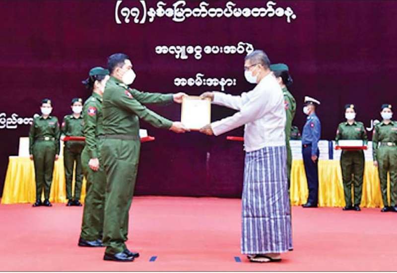 ၂၀၂၂ ခုနှစ် မတ် ၂၇ ရက်တွင် ချီးမြှင့်အပ်နှင်းမည့် ဂုဏ်ထူးဆောင်ဘွဲ့များ၊ ဂုဏ်ထူးဆောင်တံဆိပ်များ ချီးမြှင့်အပ်နှင်းရန် စိစစ်ရေးအဖွဲ့အစည်းအဝေးကို ယနေ့ညနေပိုင်းတွင် နိုင်ငံတော်စီမံအုပ်ချုပ်ရေးကောင်စီ ဥက္ကဋ္ဌရုံး အစည်းအဝေးခန်းမ၌ ကျင်းပရာ ဂုဏ်ထူးဆောင်ဘွဲ့များ၊ ဂုဏ်ထူးဆောင်တံဆိပ်များ ချီးမြှင့်အပ်နှင်းရန် စိစစ်ရေးအဖွဲ့နာယက နိုင်ငံတော်စီမံအုပ်ချုပ်ရေးကောင်စီ ဒုတိယဥက္ကဋ္ဌ ဒုတိယဝန်ကြီးချုပ် ဒုတိယဗိုလ်ချုပ်မှူးကြီး စိုးဝင်း တက်ရောက်အမှာစကားပြောကြားသည်။