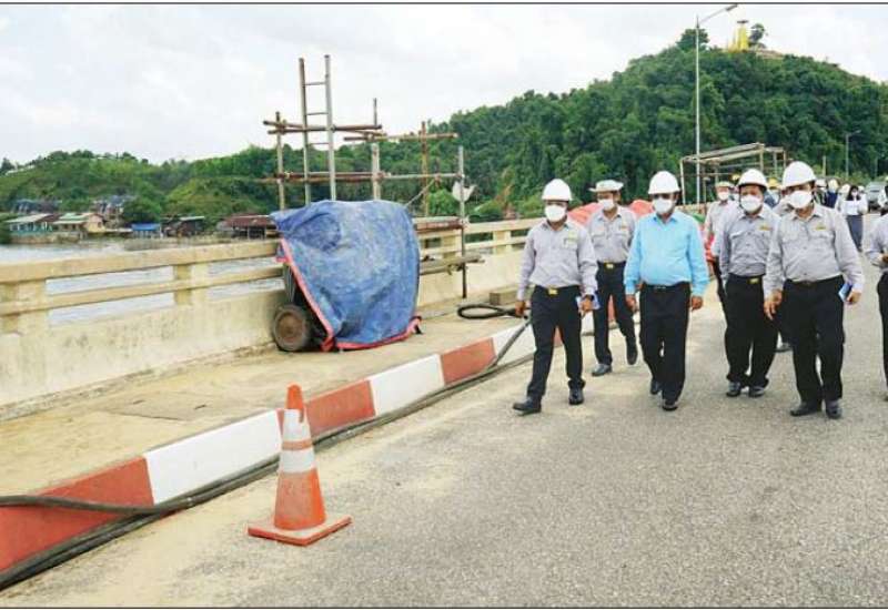 ဆောက်လုပ်ရေးဝန်ကြီးဌာန ဒုတိယဝန်ကြီး ဦးဝင်းဖေသည် ယမန်နေ့နံနက်ပိုင်းတွင် တနင်္သာရီတိုင်းဒေသကြီး မြိတ်မြို့ အာဆီယံလမ်းမကြီး AH 112 ဖြစ်သည့် ထားဝယ် - မြိတ် လမ်းပေါ်ရှိ ကျွဲကူး - ကျောက်ဖျာ တံတား ရှင်းလင်းဆောင်သို့ ရောက်ရှိရာ ရေလယ်တိုင် M-6 ပြင်ဆင် ထိန်းသိမ်းခြင်းလုပ်ငန်းနှင့်ငန်း P1 မှ M5 ကြား Plate Girder ငါးခန်း ဆေးသုတ်ခြင်းလုပ်ငန်းများ အပိုင်းလိုက်ဆောင်ရွက်နေမှုကို တာဝန်ရှိသူက ရှင်းလင်းတင်ပြရာ ဒုတိယဝန်ကြီးက တံတားတစ်ခုလုံး၏ Foundation ကြံ့ခိုင်မှု ၊ Water Level ထိ ချဉ်းကပ်တံတားနှင့် ပင်မရေလည်တိုင် Bored Pile များ၏ Lower Water Level ထိ ရေငုပ်စမ်းသပ် စစ်ချက်ရယူဆောင်ရွက်ရန်၊ P 1 မှ M5 ကြား Plate Girder ၏ သံချေးစား ပျက်စီးမှုများအား သတ်မှတ်ဘဏ္ဍာနှစ်အတွင်း ပြီးစီးအောင် ဆောင်ရွက်ရန်မှာကြားပြီး ကျွဲကူး - ကျောက်ဖျာ တံတားပေါ်သို့ လှည့်လည် ကြည့်ရှုစစ်ဆေးသည်။ မွန်းလွဲပိုင်းတွင် ဒုတိယဝန်ကြီးနှင့်အဖွဲ့သည် မြိတ်ပြည်သူ့ဆေးရုံ တိုးချဲ့ သုံးထပ်ဆောင်သို့ ရောက်ရှိပြီး လက်ရှိဆောင်ရွက်ဆဲဖြစ်သည့် လုပ်ငန်းများနှင့် ပတ်သက်၍ လုပ်ငန်းခွင် အန္တရာယ်ကင်းရှင်းရေး၊ စံချိန်စံညွှန်းပြည့်မီရေး၊ လက်ရာ သေသပ်ကောင်းမွန်ရေး၊ သတ်မှတ်ချိန် ပြီးစီးရေးတို့အား အလေးထားဆောင်ရွက်ရန် မှာကြားသည်။ ယင်းနောက် ဒုတိယဝန်ကြီးနှင့်အဖွဲ့သည် မြိတ် ပြည်သူ့ဆေးရုံ သုံးထပ်တိုးချဲ့ဆောင် ဆောက်လုပ်နေမှုကို လှည့်လည်ကြည့်ရှုစစ်ဆေးသည်။