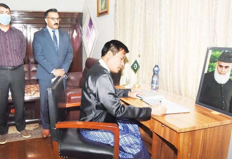 ပါကစ္စတန် အစ္စလာမ္မစ်သမ္မတနိုင်ငံ၏ သမ္မတဟောင်း H.E. Mr. Muhammad Rafiq Tarar သည် ၂၀၂၂ ခုနှစ် မတ် ၇ ရက်တွင် ကွယ်လွန်ခဲ့သည့်အတွက် နိုင်ငံခြားရေးဝန်ကြီးဌာန မဟာ ဗျူဟာလေ့လာရေးနှင့် လေ့ကျင့် ရေးဦးစီးဌာန ခေတ္တညွှန်ကြား ရေးမှူးချုပ် ဦးဇော်ဖြိုးဝင်းသည် ယနေ့ နံနက် ၁၁ နာရီခွဲတွင် ရန်ကုန်မြို့ ပြည်လမ်း အမှတ် (အေ-၄) သံတမန်ရပ်ကွက်ရှိ မြန်မာနိုင်ငံဆိုင်ရာ ပါကစ္စတန်နိုင်ငံသံရုံး၌ ဝမ်းနည်းခြင်းအထိမ်း အမှတ်စာအုပ်၌ လက်မှတ်ရေးထိုးသည်။