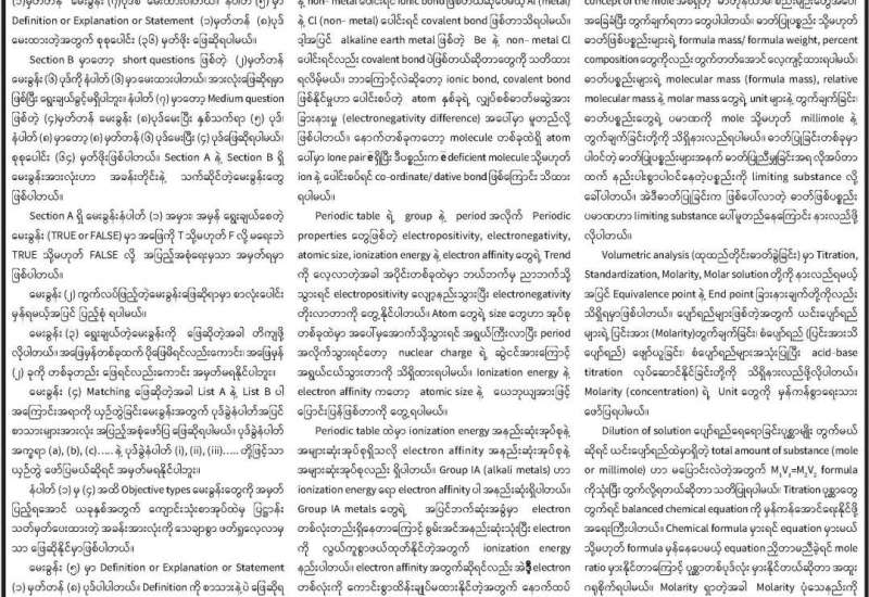 ၂၀၂၂ ခုနှစ် တက္ကသိုလ်ဝင်စာမေးပွဲ ဓာတုဗေဒဘာသာရပ် အထောက်အကူပြု သိကောင်းစရာများ