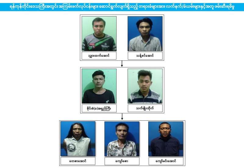 နိုင်ငံတော်မှ အကြမ်းဖက်အဖွဲ့အစည်းအဖြစ် သတ်မှတ်ထားသည့် CRPH၊ NUG နှင့် PDF အမည်ခံအကြမ်းဖက်အဖွဲ့ဝင်များ မြို့ရွာများတွင် လှုပ်ရှားသွားလာမှု မရှိစေရေး နေ့/ညမပြတ် ဖော်ထုတ်ဖမ်းဆီးခြင်းများ ဆောင်ရွက်လျက်ရှိရာ ၂၀၂၂ ခုနှစ်၊ မတ်လ ၆ ရက် ညပိုင်းတွင် တာဝန်သိပြည်သူများ၏ သတင်းပေးပို့ချက်အရ လုံခြုံရေးတပ်ဖွဲ့ဝင်များသည် မြောက်ဥက္ကလာပ မြို့နယ်၊ (ဋ)ရပ်ကွက်၊ အမှတ်(၃၅၅) နေအိမ်၌ သျှားထက်အောင်(၂၄)နှစ်အား ပစ္စတို ၁ လက်၊ ကျည်အိမ် ၂ ခု၊ ၉ မမ ကျည် ၉ တောင့်၊ ဖုန်းမျိုးစုံ ၂ လုံးတို့နှင့်အတူ ဖမ်းဆီးရမိပြီး တရားခံ သွားထက်အောင်၏ ထွက်ဆိုချက်အရ မြောက်ဥက္ကလာပမြို့နယ်၊ ဝေဘာဂီမြို့သစ်၊ (၄)ရပ်ကွက်၊ အမှတ်(၈၇)နေအိမ်၌ သန့်စင်အောင်(၂၃)နှစ်အား ဖမ်းဆီး ရမိခဲ့သည်။