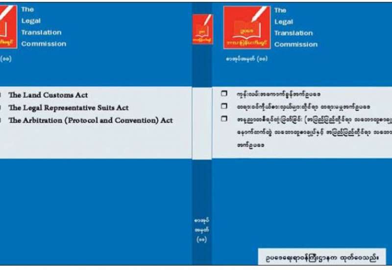 ဥပဒေရေးရာ ဝန်ကြီးဌာနသည် ဥပဒေဘာသာပြန် ကော်မရှင်က မြန်မာဘာသာသို့ ပြန်ဆိုပြီးသည့် ဥပဒေများကို စာအုပ်ထုတ်ဝေလျက်ရှိရာ ဘာသာပြန်စာအုပ် အမှတ် (၁၀) စာအုပ်ကို ထုတ်ဝေပြီး ဖြစ်သည်။