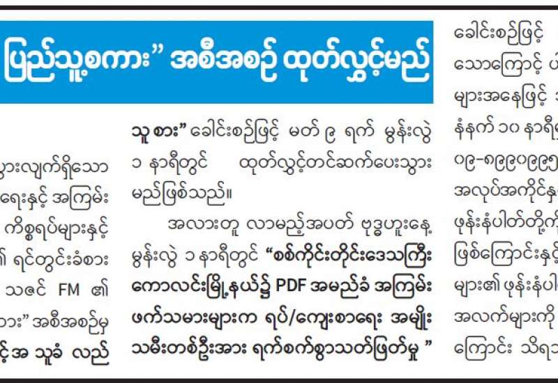 CRPH၊ NUG နှင့် PDF အမည်ခံအကြမ်းဖက်အဖွဲ့များသည် ပြည်သူလူထု အထိတ်တလန့် ဖြစ်စေရန်အတွက် မိုင်းထောင်ဖောက်ခွဲဖျက်ဆီးခြင်း၊ အပြစ်မဲ့ပြည်သူများနှင့် ဆရာတော်၊ သံဃာတော်များပါမကျန် လုပ်ကြံသတ်ဖြတ်ခြင်း၊ မြို့ရွာများတွင် တက္ကသိုလ်များ၊ အခြေခံပညာကျောင်းများ ပြန်လည်ဖွင့်လှစ် သင်ကြားပေးလျက်ရှိရာ ကျောင်းသား၊ ကျောင်းသူများ ပညာသင်ကြားနေမှုများအပေါ် အကြမ်းဖက်အဖွဲ့များက စာသင်ကျောင်းများအား မိုင်းထောင် ဖောက်ခွဲခြင်း၊ မီးရှို့ဖျက်ဆီးခြင်းစသည့် အကြမ်းဖက်လုပ်ရပ်များကို အသိတရားမဲ့စွာ လုပ်ဆောင်လျက်ရှိသည်။