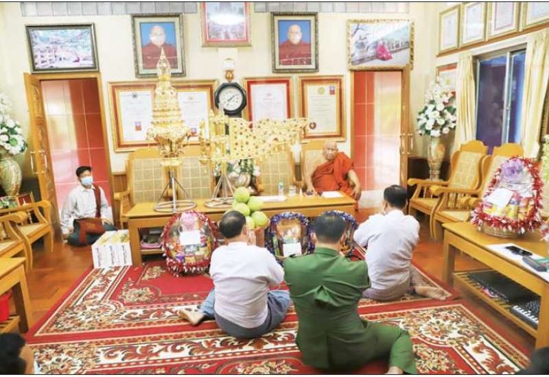 အဋ္ဌမအကြိမ် နိုင်ငံတော်သံဃမဟာနာယကအဖွဲ့ (၄၇) ပါးစုံညီ ဒသမ အစည်းအဝေးသို့ ကြွရောက်တော်မူလာကြသော နိုင်ငံတော် သံဃမဟာနာယက အဖွဲ့ဝင်ဆရာတော် အရှင်မြတ်တို့ဘုရား -