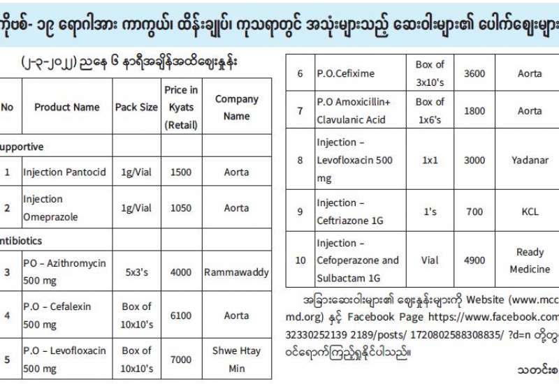 ကျန်းမာရေးဝန်ကြီးဌာနအနေဖြင့် နိုင်ငံအတွင်း ကူးစက်ဖြစ်ပွားနေသော COVID-19 ရောဂါ ကာကွယ်၊ ကုသ၊ ထိန်းချုပ်ရေးလုပ်ငန်းများကို အရှိန်အဟုန်မြှင့်ဆောင်ရွက်လျက်ရှိရာ ရောဂါထိန်းချုပ်ရေးလုပ်ငန်းများ အောင်မြင်နိုင်ရေးအတွက် ပြည်သူလူထုအနေဖြင့် ကျန်းမာရေးဝန်ကြီးဌာနမှ ထုတ်ပြန်ထားသော COVID-19 ရောဂါကာကွယ် ထိန်းချုပ်ရေးဆိုင်ရာ စည်းကမ်းများကို စနစ်တကျလိုက်နာ ဆောင်ရွက်ရန်လိုအပ်ပြီး COVID-19 ကာကွယ်ဆေး ထိုးနှံမှုခံယူခြင်းအား အထူးဂရုပြု ပူးပေါင်းဆောင်ရွက်ကြရန် လိုအပ်ပါသည်။