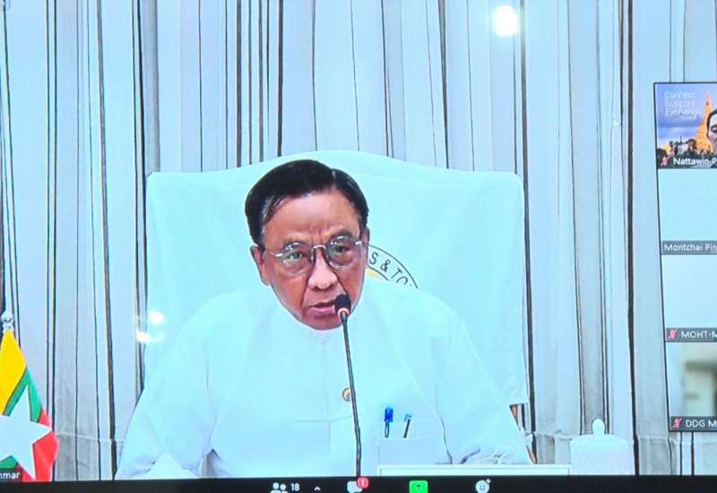 ဟိုတယ်နှင့်ခရီးသွားလာရေးဝန်ကြီးဌာန၊ ပြည်ထောင်စုဝန်ကြီး ဒေါက်တာဌေးအောင်သည် ယနေ့ မွန်းလွဲပိုင်းတွင် အဆိုပါဝန်ကြီးဌာန၊ နီလာခန်းမမှ ထိုင်းနိုင်ငံ၊ Kasetsart University မှကြီးမှူး၍ ကမ္ဘောဒီးယား၊ လာအို၊ မြန်မာ၊ ဗီယက်နမ်နှင့် ထိုင်းနိုင်ငံ တို့ပါဝင်သော CLMVT Forum ၏ အကျိုးကျေးဇူးများနှင့် ဖိုရမ်များ ဆက်လက်ကျင်းပရေးဆိုင်ရာ ညှိနှိုင်းဆွေးနွေးပွဲသို့ ဗီဒီယိုကွန်ဖရင့်စနစ်ဖြင့် တက်ရောက်သည်။